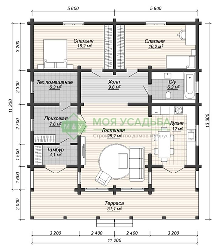 | Внешние стены | Профилированный брус 140х140мм | Профилированный брус 190х140мм |