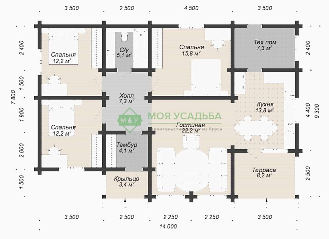 | Внутренние стены | Профилированный брус 140х140мм | Профилированный брус 190х140мм |