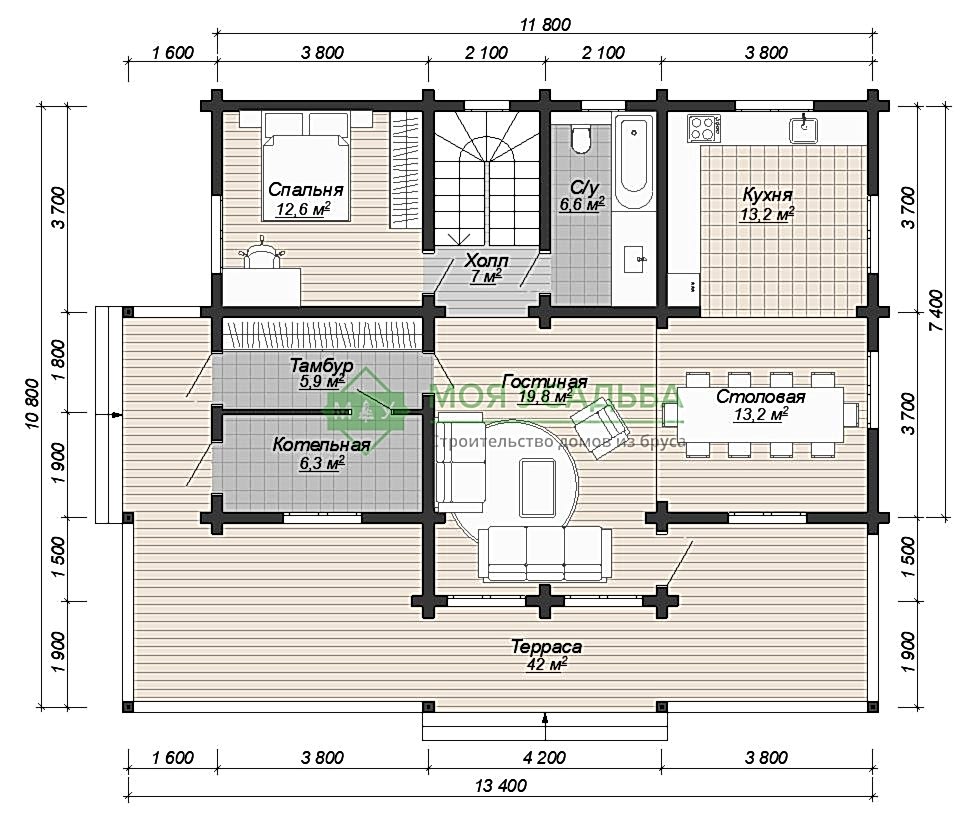 | Внутренние Pin Up на первом и втором этаже | Профилированный брус 140х140мм | Профилированный брус 190х140мм |