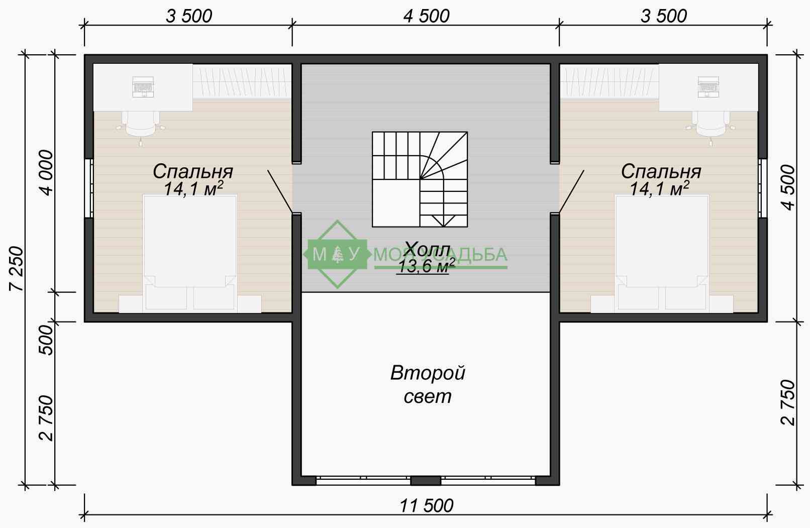 | Высота мансарды в чистоте (от балки до Pin Up | 2.5м | 2.5м |