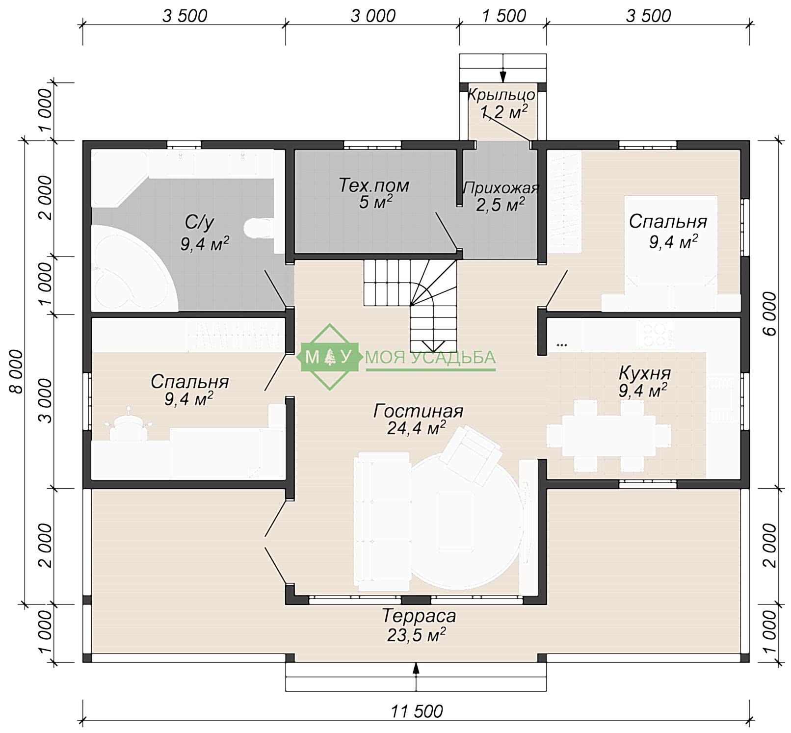 | Внутренние стены на первом этаже | Внутренние несущие Pin Up 140х145мм, остальные стены 90х145мм | Профилированный брус 140х145мм |