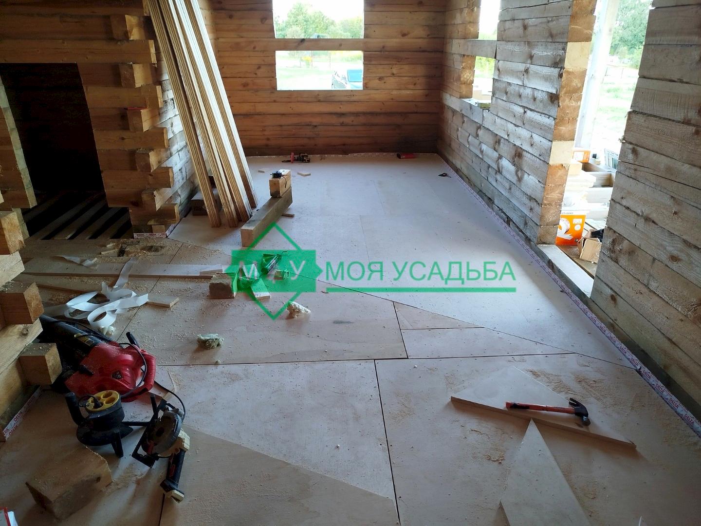 - монтаж фанеры на полы, ГВЛВ на полы частично в гостиной, в с Pin Up